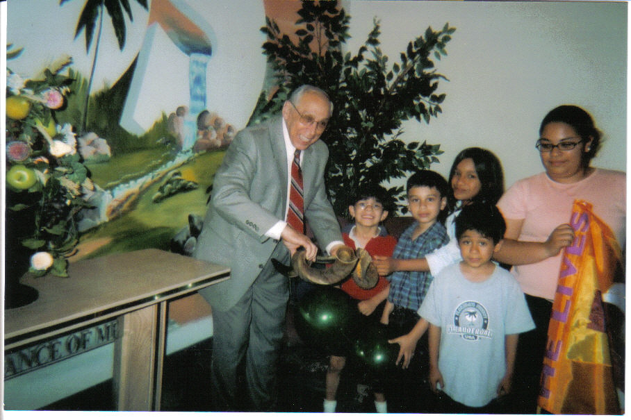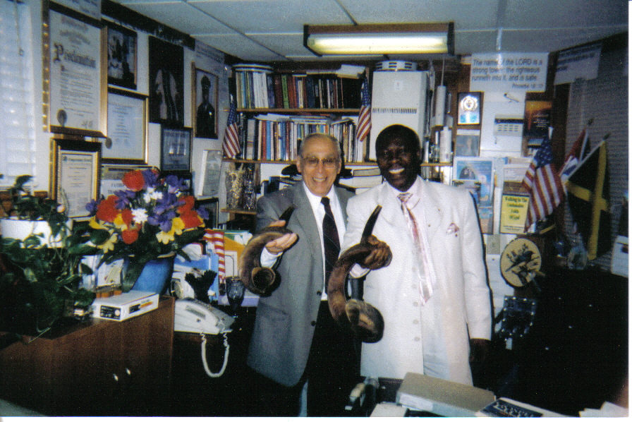Brother Rocco & Dr. Keith Elijah Thompson, pastor of Bronx Miracle Gospel Tabernacle. Brother Rocco (next to the phone) taught Dr. Thompson how to blow the shofar. Dr. Thompson blows the shofar, not only at Bronx Miracle, but when he goes out to preach. Brother Rocco travels frequently with Rev. Cohen. Rev. Cohen ministers at Bronx Miracle.