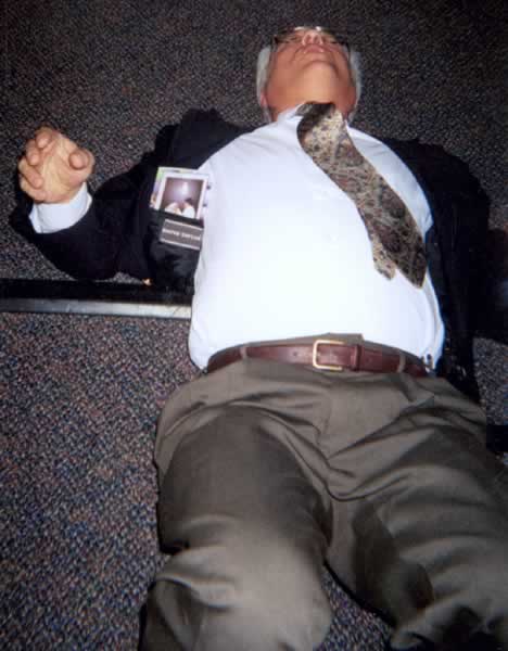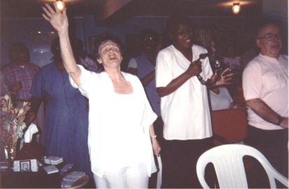 Minister Roach under a heavy anointing, worshipping God. As he came up for prayer, he was slain in the spirit without a hand being put on him. The presence of the Holy Spirit was so strong, he couldn't stand.