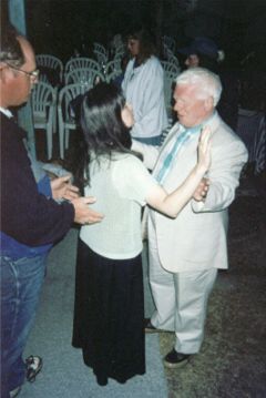 Minister Ed Bull praying for a hurting sister who is believing God for a miracle. This tent meeting revival in Kingston, Ontario was filled with God's wonderful works for all four meetings.